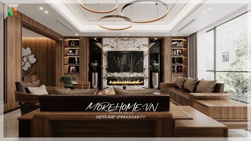 Thi công hoàn thiện vách tivi biệt thự Vinhomes Imperia Hải Phòng