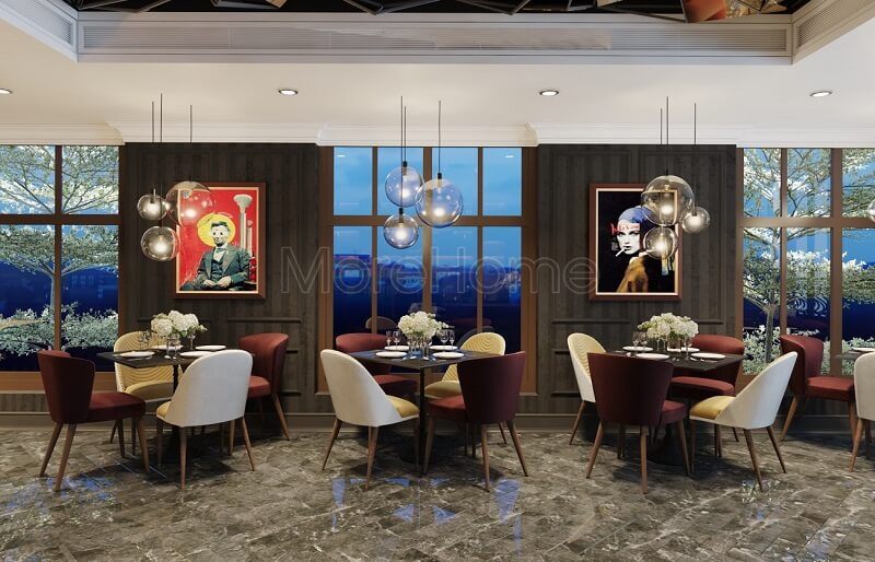 Kiến trúc sư đã thiết kế một nhà hàng đẹp với khả năng phản xạ ánh sáng tuyệt vời, giúp cho khu vực nhà hàng luôn có vẻ tươi mới và sang trọng.