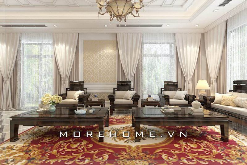Sofa gỗ óc chó tân cổ điển là lựa chọn hợp lý để trang trí những không gian nhà lô cao cấp.