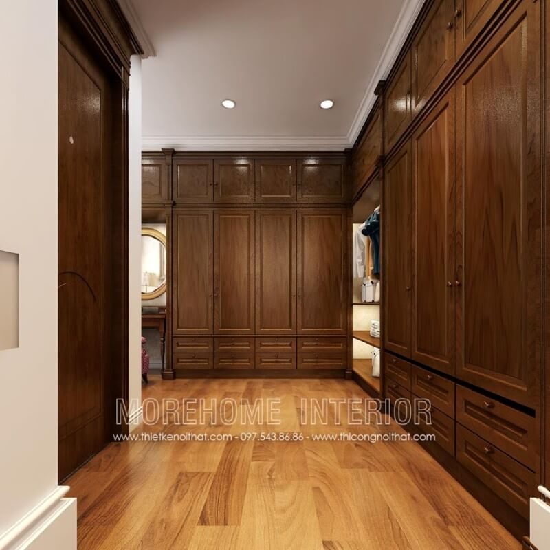 Tủ quần áo gỗ óc chó có kiểu dáng tân cổ điển sang trọng sẽ làm nổi bật không gian phòng ngủ của bạn.