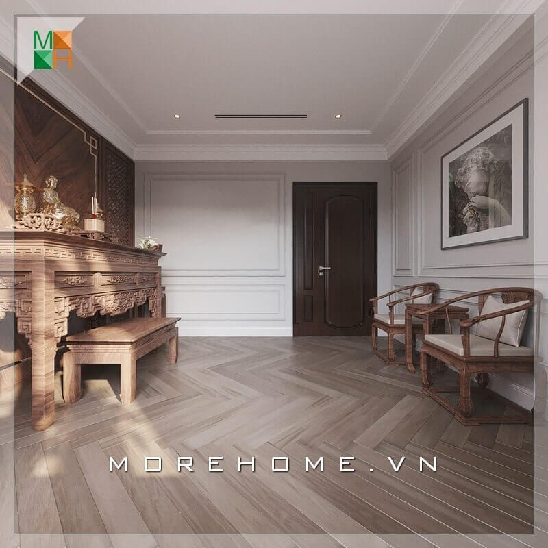 Sàn lát gỗ sẽ tạo ra một không gian phòng thờ đầy đủ tiện nghi và sang trọng hơn.